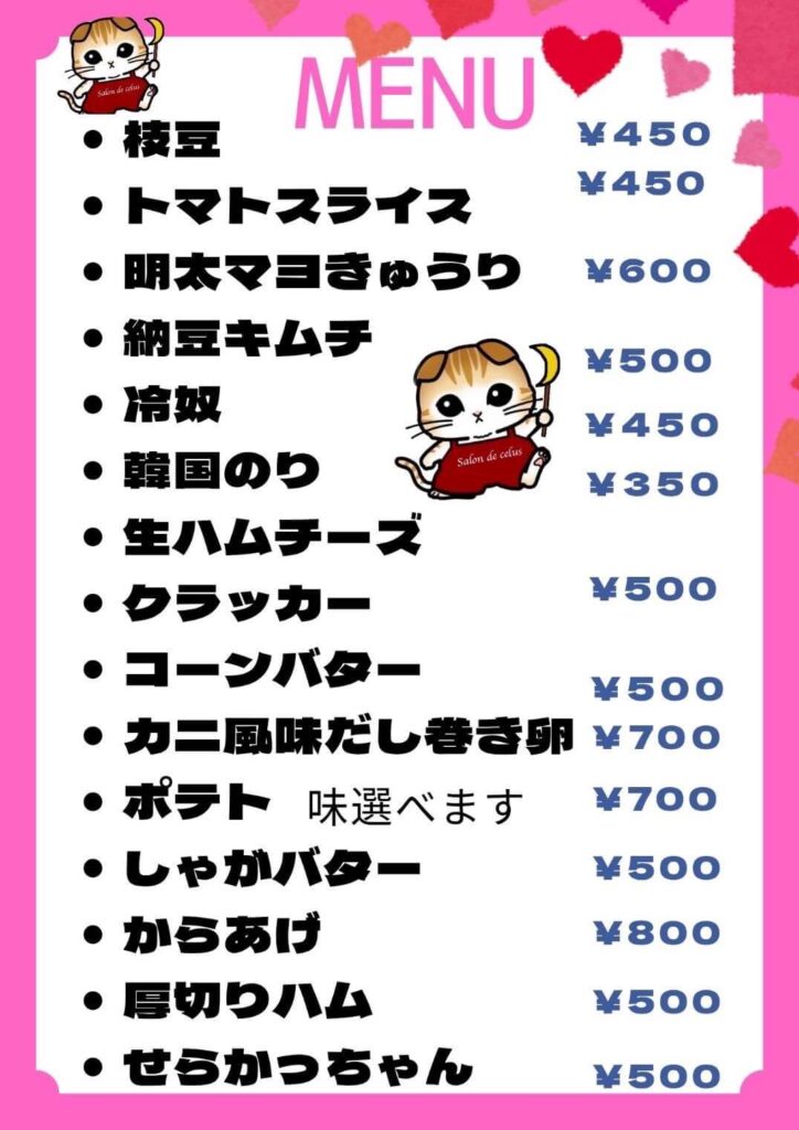 | 熱燗・冷や・冷酒(1合) | ¥1,000 |